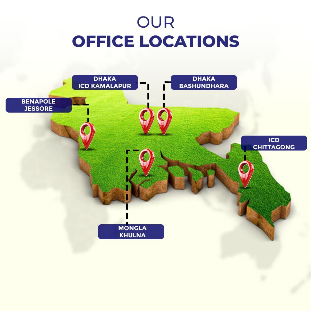 We do perform custom clearing and forwarding works in different stations like Dhaka airport, Chittagong ICD Kamalapur, Benapole, and EPZ’s of Savar, Narayangonj, Comilla and Chittagong. We do work for many government Private and autonomous organizations